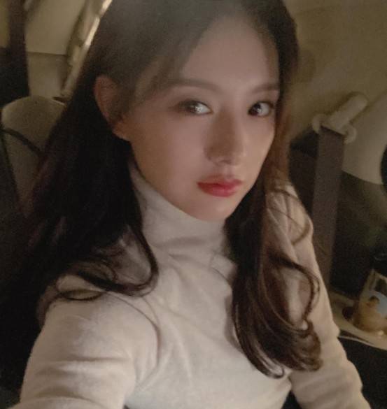 사진에는 김지원이 차안에서 셀카를 찍고 있는 모습이 담겨있다.