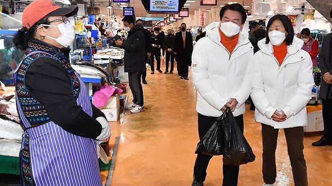 국민의당 안철수 대선 후보는 서울 동작구 노량진수산시장에서 부인 김미경 교수와 '장보기'로 민생 행보를 시작했습니다.