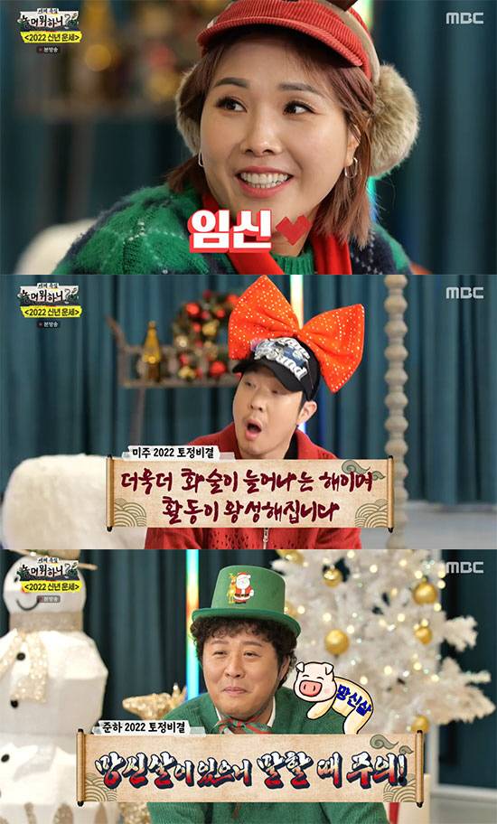 멤버들은 새해를 맞이해 각자 신년운세를 확인했다. 돼지띠인 정준하는 개띠 미주에게 "2022년엔 우리가 대박 띠"라고 자신이 휴대폰으로 보고 온 운세를 밝혔다. 그러면서 쥐띠 유재석에게는 "너는 삼재던데?"라고 폭로해 유재석을 발끈하게 했다. 유재석은 "전국에 계신 쥐띠 여러분, 정준하 씨가 삼재라는데 이겨냅시다!"라고 목소리를 높였다.