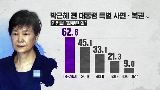 [여론조사] 박근혜 사면 "잘했다" 63.4%..20대 '부정적'