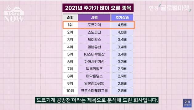 최고 상승종목은 450% 오른 도쿄기계