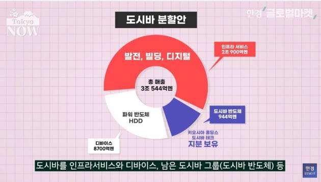 지난 11월에는 도시바를 3개 회사로 분할한다는 핵폭탄급 선언을 했다. 도시바를 인프라서비스와 디바이스, 남은 도시바 그룹(도시바 반도체) 등 3개 회사로 나누는 것이 분할안의 핵심이다. 고질병인 '복합기업 디스카운트'를 해소하기 위해서다.