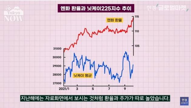 한국과 마찬가지로 수출제조업의 비중이 큰 일본에서 적어도 주식시장은 엔저를 반겼다. 엔화가치가 떨어지면 수출제조업 실적이 좋아져 주가가 올랐기 때문이다. 오랫동안 '엔저=주가 상승'이 공식처럼 사용됐다.
