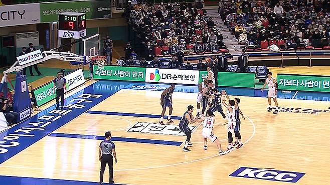 3점슛, 또 3점슛, 혼자 3점슛 3발을 연달아 집어 넣은데 이어 이번엔 KCC의 볼을 가로채 강력한 원핸드 덩크까지 터트립니다.