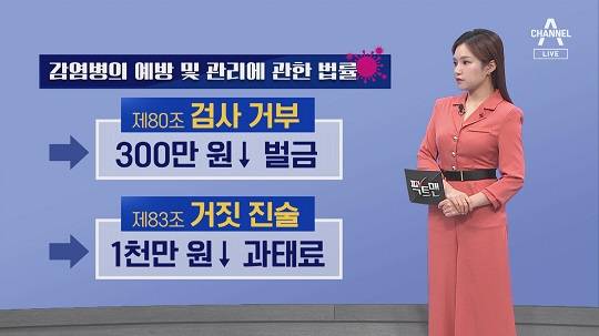 감염환자로 의심되는데 검사를 거부하거나, 감염 여부, 진료 이력을 거짓으로 밝힌 사람에게 벌금을 징수한다는 내용일 뿐
