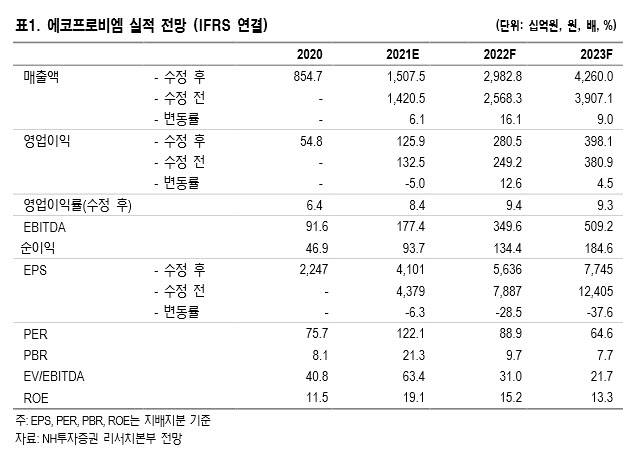 에코프로비엠, 올해 실적 상향조정..투자의견 '매수'-NH