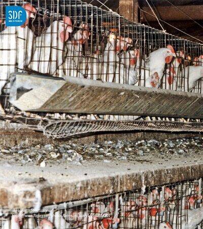 이번엔 산란계입니다. 작은 철장에 처박힌 채 둥지를 짓거나 날개를 펴거나 자유롭게 걷는 기회조차 누리지 못합니다.