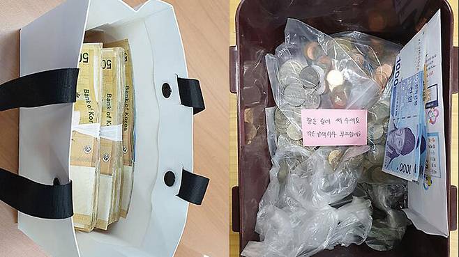 앞서 같은 달 10일에는 50대로 보이는 여성이 역시 신원을 밝히지 않은 채 동전과 지폐 등 20만8천280원이 들어있는 반찬통을 평내동 주민센터에 놓고 갔습니다.