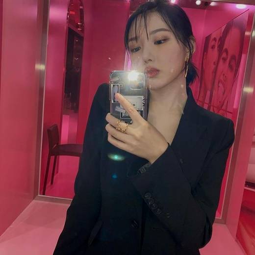 공개된 사진 속 예린은 핸드폰 플래시를 켠 채 거울에 비친 자신의 모습을 사진으로 남기고 있다. 음영 메이크업과 웨트 헤어스타일이 고혹적인 매력을 배가한다.
