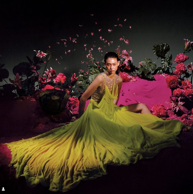 로스앤젤레스에서 촬영된 화보에서 정호연은 초록빛으로 빛나는 드레스를 입고, 우주를 유영하는 듯한 포즈로 비늘처럼 반짝이는 손을 펼쳐보이는가 하면, 그 자신이 거대한 꽃이 된 듯 몽환적인 포즈를 취해 보인다.