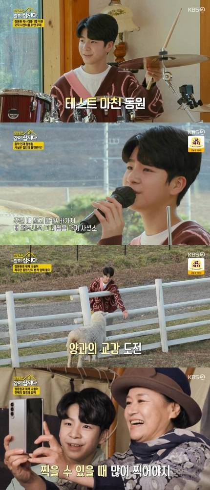 특히 정동원은 집 한 켠에 마련된 드럼을 연주하고 '보릿고개'를 부르며 미니 리사이틀 공연을 펼쳤다. 정동원은 드럼 실력에 대해 "4개월 정도 쳤던 것 같다"며 독학으로 드럼 연주를 배우게 된 사실을 밝혀 감탄을 자아냈다. '보릿고개' 요청에는 즉석에서 무반주로 열창하며 열렬한 팬심에 화답했다.