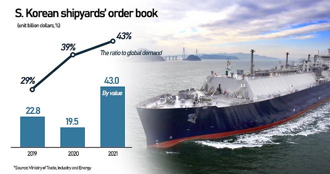 Korean shipyards command 37% of global orders in 2021, best in 8 years