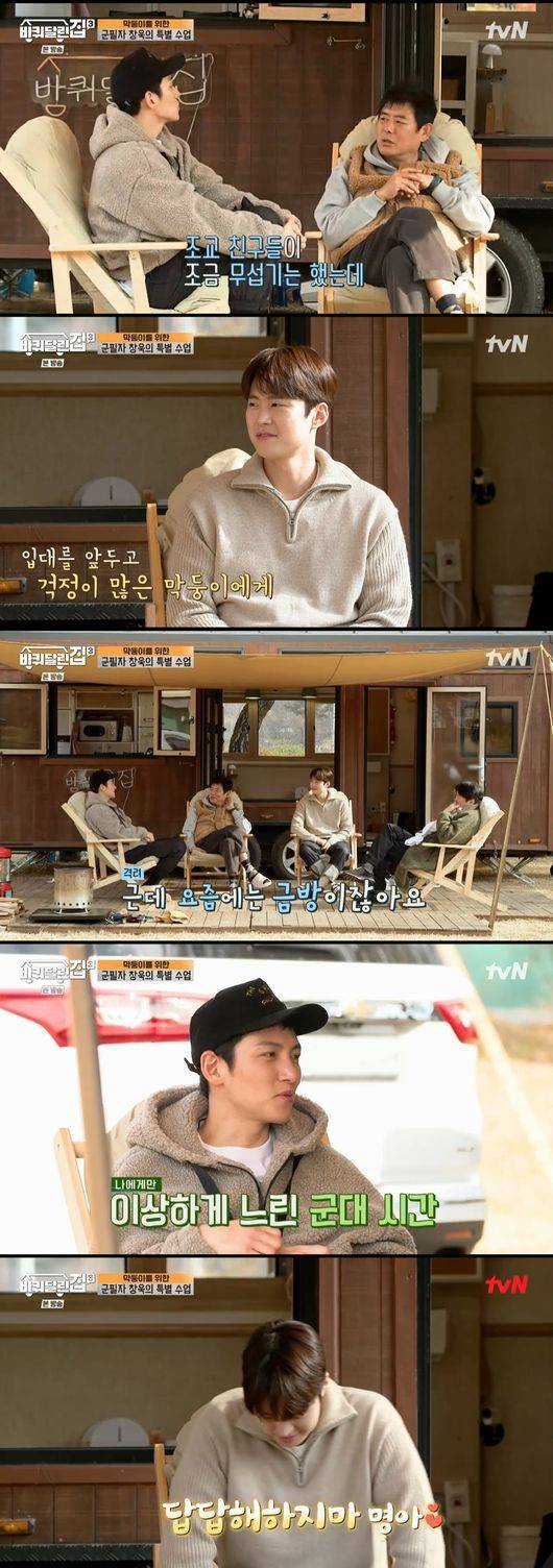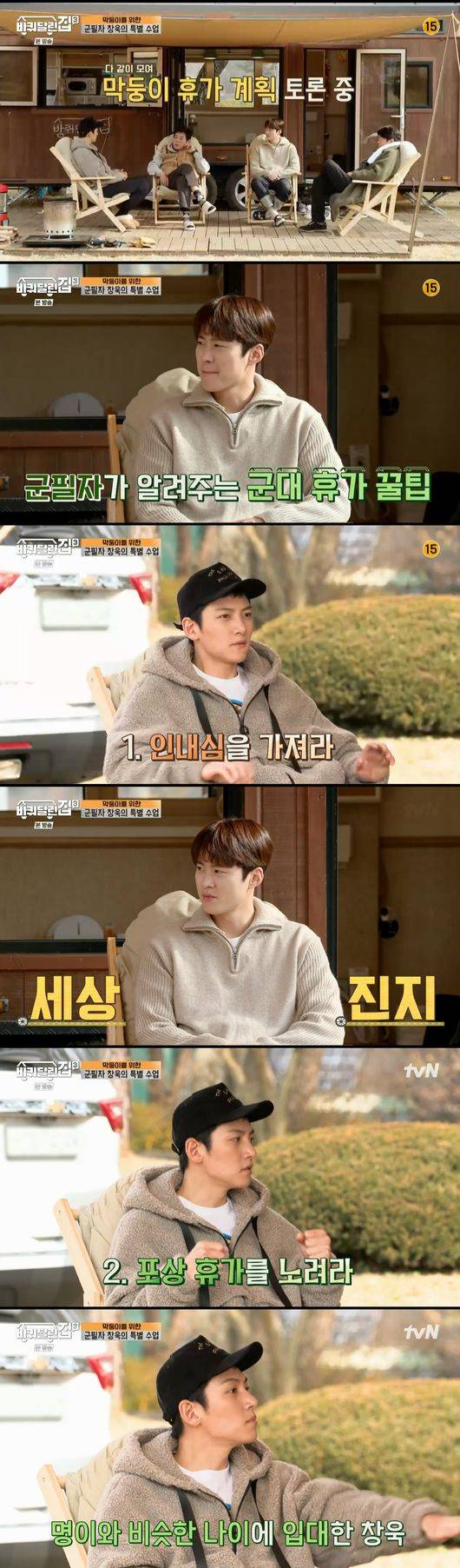 지창욱은 군대에 대한 꿀팁을 전하며 "휴가를 잘 분배해야한다. 참을 때는 좀 참아야 한다. 내가 어떤 포상을 받을 수 있는지 계획을 세워야 한다"라고 말했다.