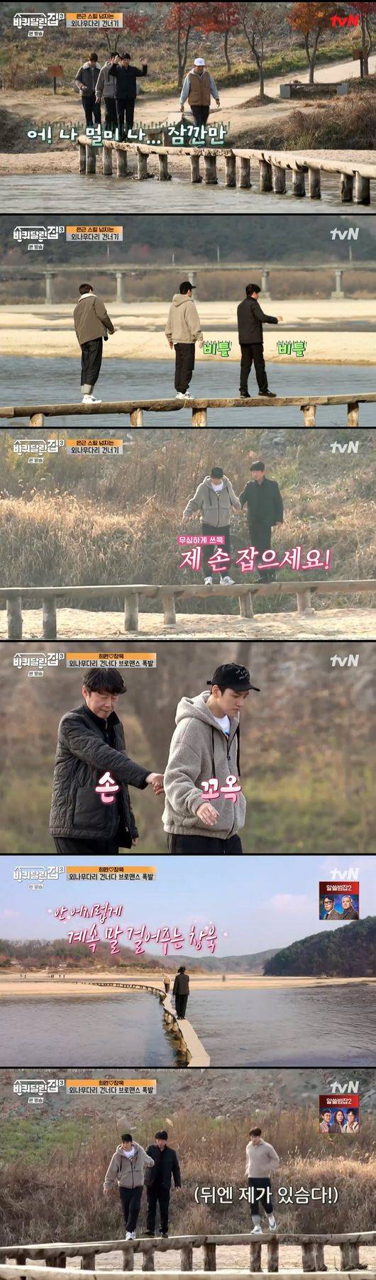 지창욱은 "내가 앞장 서겠다"라며 김희원의 손을 잡고 천천히 다리를 건너기 시작했다. 네 사람은 한옥마을에 도착해 고즈넉한 풍경을 즐기다 붕어빵을 사먹으며 추억 이야기를해 분위기를 훈훈하게 했다.
