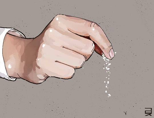 가끔은 ‘꼬집’이라는 귀여운 표현도 발견된다. ‘꼬집다’라는 단어에서 따온 것일 텐데 결국 엄지와 검지로 집을 만한 정도의 적은 양을 가리키는 것이리라. 이는 정확한 양을 가리키기보다는 넣은 듯 안 넣은 듯 감으로 조절할 수밖에 없다. 시대가 달라졌다 하더라도 레시피와 계량 도구를 늘어놓고 하는 요리는 아직은 미덥지 않다. 한 움큼 재료를 한소끔 끓여낸 후 한 꼬집 양념으로 간을 맞춘, 감으로 한 요리가 여전히 정겹다.