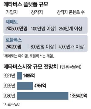 정보기술(IT) 업계에 따르면 전 세계적으로 10대 사용자가 압도적으로 많은 제페토에 최근 20·30대 유입이 늘어나고 있다. 가장 큰 이유는 크리에이터들이 진출했기 때문이란 분석이다. 제페토에서 활동하는 크리에이터는 100만명을 넘어선 것으로 알려졌다. 2D·3D 이미지·애니메이션 제작 지식·노하우만 있으면 누구나 제페토 아바타가 사용할 수 있는 상의·하의, 액세서리, 매니큐어 등 다양한 아이템을 '제페토 스튜디오'를 활용해 만들 수 있다. 아이템 가격도 사용자가 직접 책정한다. 제페토 사용자들 사이에서 신상품이 언제 출시될지에 대한 정보가 돌고, 인기 크리에이터는 아이템을 할인된 가격으로 판매하는 세일 이벤트도 연다. 한 정보기술(IT)업계 관계자는 "제페토에선 플랫폼 재화인 젬(Zem)을 통해 아이템을 사고파는데 현실과 같은 시장경제가 작동하고 있는 셈"이라고 말했다. 로블록스에서 게임을 만드는 크리에이터는 800만명을 넘어섰다. 이 가운데 130만명이 수익을 올리고 있고, 10만달러(약 1억원) 이상 수익을 내는 사람도 300명 이상이다. '로블록스 게임 개발자'란 직업이 있을 정도다.