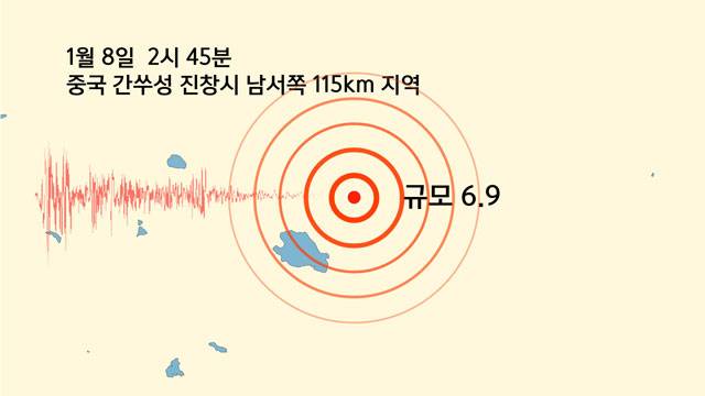 오늘(8일) 오전 2시 45분에 중국 간쑤성 진창시 남서쪽 115km 지역에서 규모 6.9의 지진이 발생했습니다.