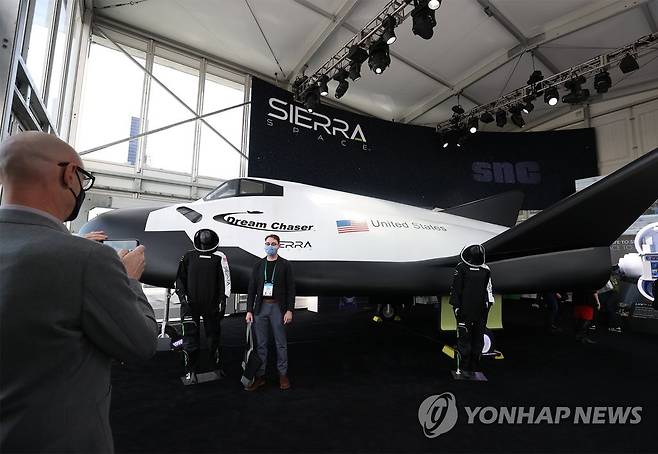 (라스베이거스=연합뉴스) 이지은 기자 = 세계 최대 전자·IT 전시회인 'CES 2022' 마지막날인 7일(현지시간) 미국 네바다주 라스베이거스 컨벤션센터 야외전시장에 설치된 미국 우주항공기업 시에라 스페이스 전시관에 우주왕복선 '드림체이서'가 전시돼 있다. 2022.1.8