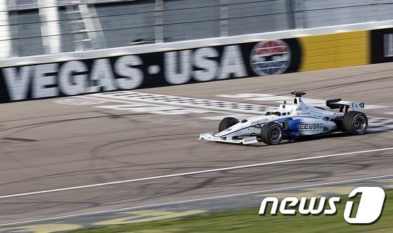 (라스베이거스(미국)=뉴스1) 조태형 기자 = 세계 최대 전자·가전·정보기술(IT) 전시회 CES 2022 마지막 날인 7일(현지시간) 미국 네바다주 라스베이거스 모터 스피드웨이에서 열린 인디 자율주행 챌린지에 참가한 한국과학기술원(KAIST)의 자율주행 레이싱카가 질주하고 있다. 최대 300km/h까지 주행 가능한 자율주행 레이싱카로 경쟁하는 이번 대회에 아시아 유일팀인 KAIST는 4위를 기록했다. 2022.1.8/뉴스1