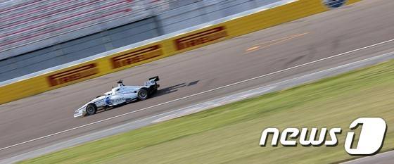 (라스베이거스(미국)=뉴스1) 조태형 기자 = 세계 최대 전자·가전·정보기술(IT) 전시회 CES 2022 마지막 날인 7일(현지시간) 미국 네바다주 라스베이거스 모터 스피드웨이에서 열린 인디 자율주행 챌린지에 참가한 한국과학기술원(KAIST)의 자율주행 레이싱카가 질주하고 있다. 최대 300km/h까지 주행 가능한 자율주행 레이싱카로 경쟁하는 이번 대회에 아시아 유일팀인 KAIST는 4위를 기록했다. 2022.1.8/뉴스1