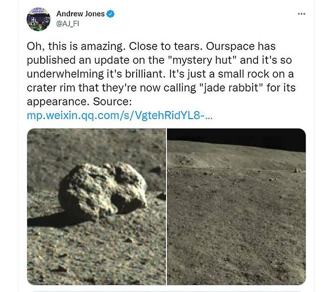 지난해 중국의 달 탐사로버 '위투(玉兎·옥토끼) 2호'가 달의 뒷면에서 포착해 '신비한 작은집'으로 관심을 끌었던 물체가 결국 돌덩어리로 밝혀졌습니다.