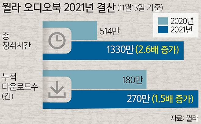 월정액 오디오북 서비스 플랫폼 윌라에 따르면, 지난해 12월 윌라의 오디오북 이용자 5248명을 대상으로 설문 조사한 결과 오디오북을 가장 많이 이용하는 시간은 ‘대중교통을 이용할 때’인 것으로 나타났고, 그 뒤를 ‘운전할 때’가 이었다. 전체 이용자의 69%가 이동 중 오디오북을 청취한다고 답했다.