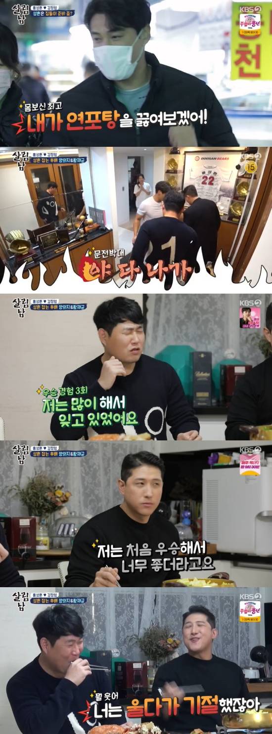 8일 방송된 KBS 2TV '살림하는 남자들 시즌2'(이하 '살림남2')에서는 홍성흔이 양의지 선수와 황재균 선수를 집들이에 초대한 장면이 전파를 탔다.