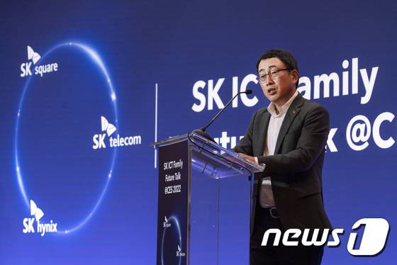(서울=뉴스1) 민경석 기자 = SK스퀘어와 SK텔레콤, SK하이닉스가 미국 라스베이거스에서 열린 세계 최대 가전∙IT 전시회 CES 2022에서 ICT 융합기술을 공동 개발 및 투자하고 글로벌 진출까지 도모하는 ‘SK ICT 연합’ 출범을 선언했다.