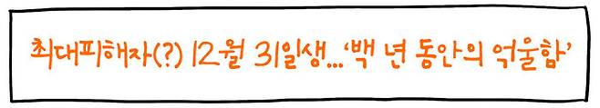 직접 인터뷰한 12월 31일 출생자들은 하나같이 저마다 나이에 얽힌 '억울한' 사연이 있었습니다. 세대는 제각각이었지만 서로 미리 말을 맞추기라도 한 듯, 본격적으로 자신의 사연을 털어놓기에 앞서 취재진에게 (약간의 울분을 담아) 본인이 몇 시에 태어났는지부터 밝혔습니다.