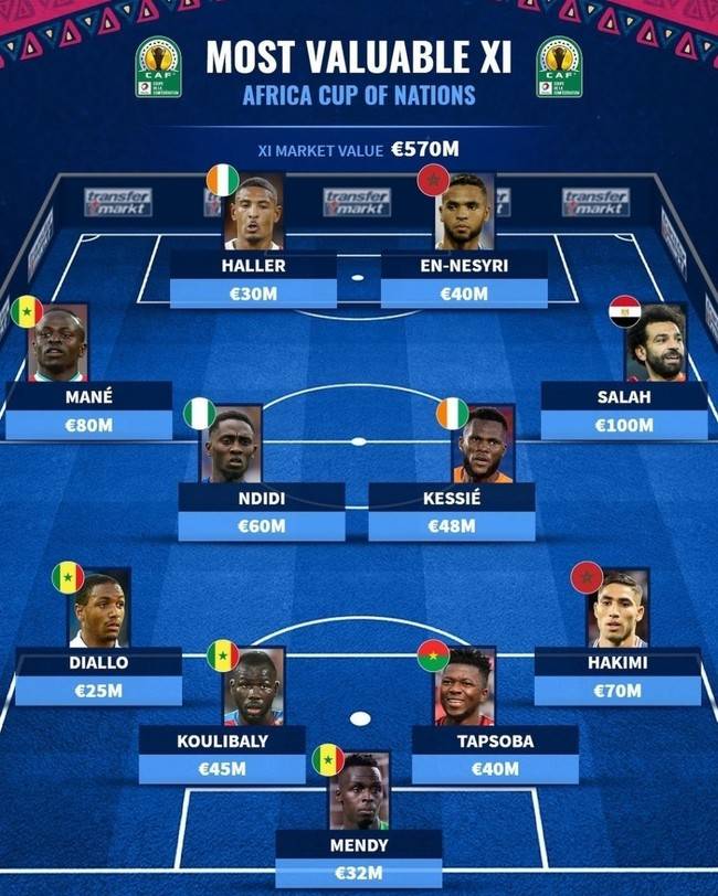 축구 통계 매체 '트랜스퍼마크트'는 다가오는 2022 아프리카축구연맹(CAF) 네이션스컵을 앞두고 포지션별 각 국가를 대표하는 최고의 스타들을 모아 BEST 11을 구성했다.