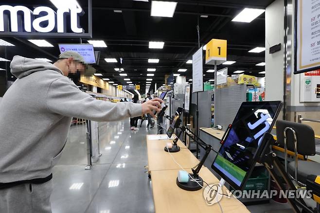 (고양=연합뉴스) 이진욱 기자 = 오는 10일부터 백화점, 대형마트에 가려면 코로나19 백신 접종증명서나 48시간 내 발급받은 PCR(유전자증폭검사) 음성확인서를 내야 한다. 9일 오후 경기도 고양시 한 대형마트에서 시민들이 QR 체크인을 하고 있다. 2022.1.9