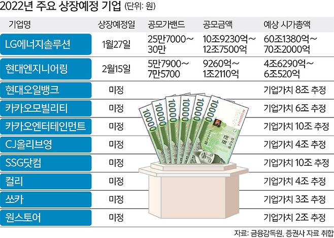 LG에너지솔루션 외에도 올해는 연중 내내 대형주들의 상장이 줄줄이 예고돼 있다.