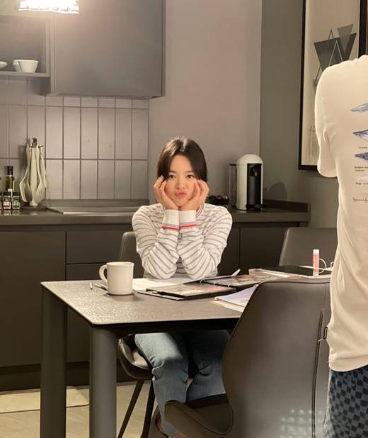 그중에는 송혜교의 모습도 담겨 눈길을 끌었다. 송혜교는 촬영 대기 중 자신을 찍는 카메라를 발견하고는 사랑스러운 포즈를 취했다.