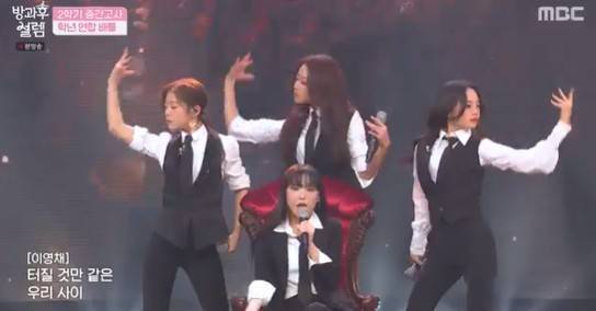 이날 방송에선 2학기 중간고사 학년 연합 배틀 보컬 대결이 펼쳐졌다. 이날 3학년과 4학년 연합은 태연의 ‘아이’를 부르며 청아한 보이스와 화음을 자랑했다. 이에 맞서는 1학년과 2학년 연합은 마마무의 ‘데칼코마니’무대를 꾸미며 파워풀한 보이스와 댄스까지 더하며 강렬한 무대를 선사했다.