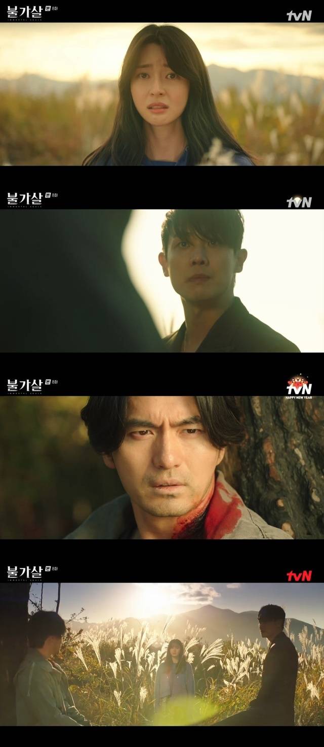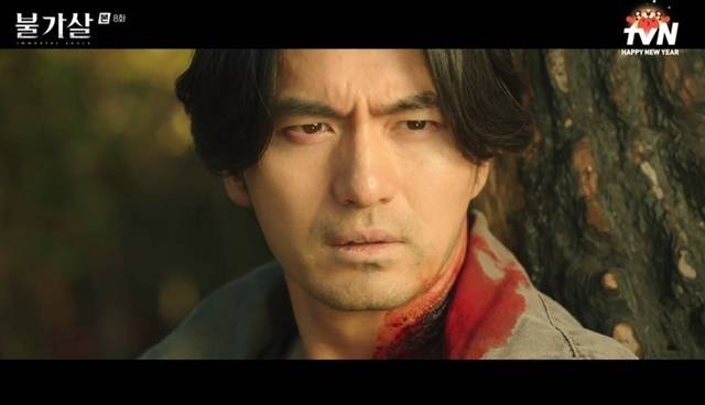 단활은 쓰러지면서도 권호열을 구했다. 옥을태는 제 수하의 목을 물어 단활을 구했고, 권호열은 단활이 불가살이란 사실을 뒤늦게 알고 놀라 도망쳤다. 민상운도 그 곳으로 달려갔고, 옥을태는 단활에게 “600년 전 네 가족을 죽인 저 여자가 너도 죽일 거다”고 말했다. 이에 민상운은 “아니다. 600년 전 당신 가족을 죽인 건 내가 아닌 옥을태”라고 말했고, 단활은 혼란에 빠졌다. (사진=tvN ‘불가살’ 캡처)