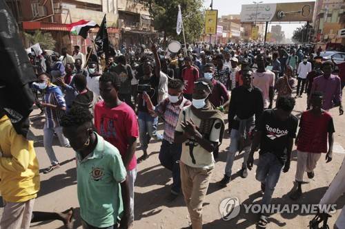 People march during a protest to denounce the October 2021 military coup, in Khartoum, Sudan, Sunday, Jan. 9, 2022. The United Nations said Saturday it would hold talks in Sudan to try to get the country's democratic transition back on track after it was derailed by the coup. (AP Photo/Marwan Ali)