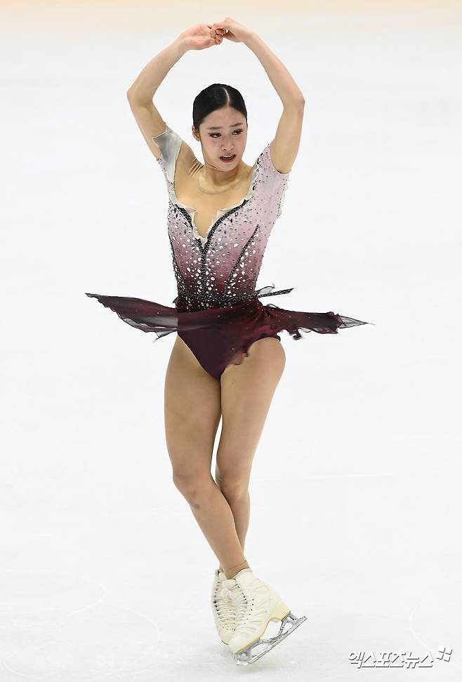 (엑스포츠뉴스 의정부, 고아라 기자) 9일 경기도 의정부 실내빙상장에서 열린 'KB금융 코리아 피겨스케이팅 챔피언십 2022' 여자 시니어 프리 프로그램에 출전한 유영이 연기를 선보이고 있다.