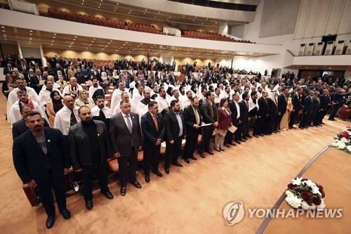 Newly elected lawmakers attend the first parliament session, in Baghdad, Iraq, Sunday, Jan. 9, 2022. Iraq's new parliament held its first session on Sunday, nearly three months after Iraqis voted in a general election whose results have been contested by powerful Iran-backed factions. (Iraqi Parliament Media Office via AP) AP PROVIDES ACCESS TO THIS PUBLICLY DISTRIBUTED HANDOUT PHOTO PROVIDED BY THE IRAQI PARLIAMENT MEDIA OFFICE; MANDATORY CREDIT.