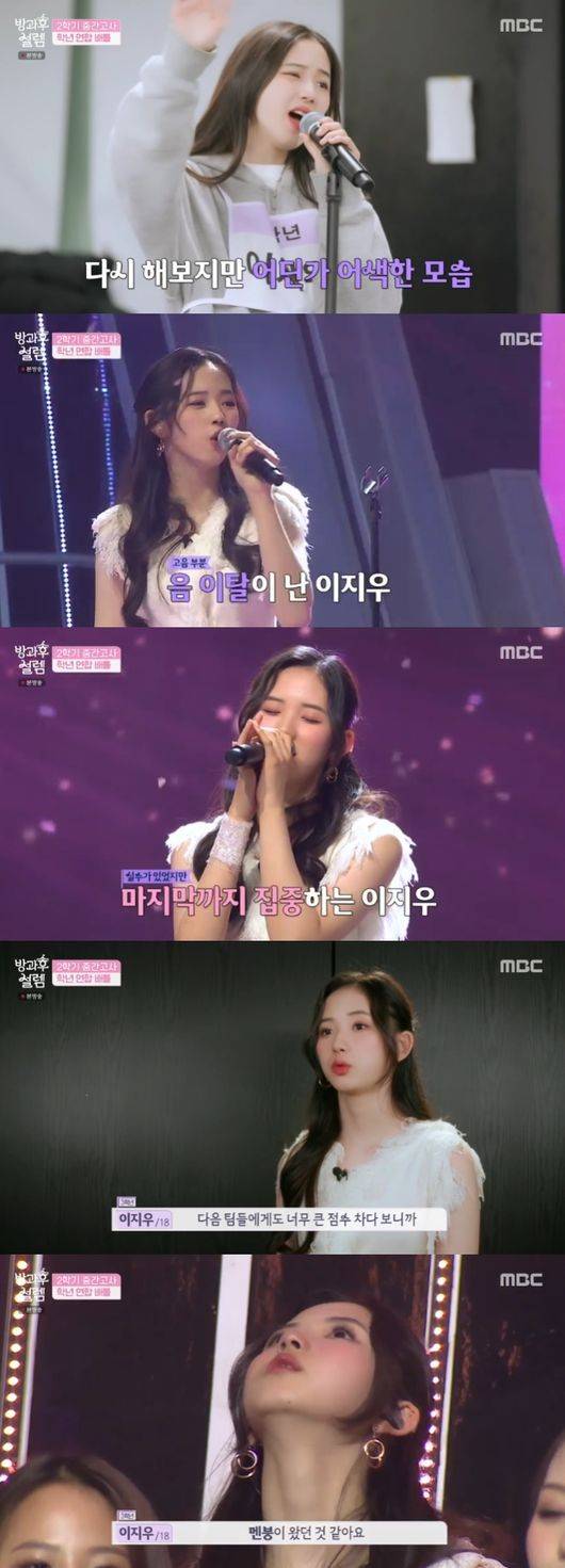 [OSEN=김나연 기자] '방과후 설렘' 3학년 이지우가 음이탈 실수에 눈시울을 붉혔다.