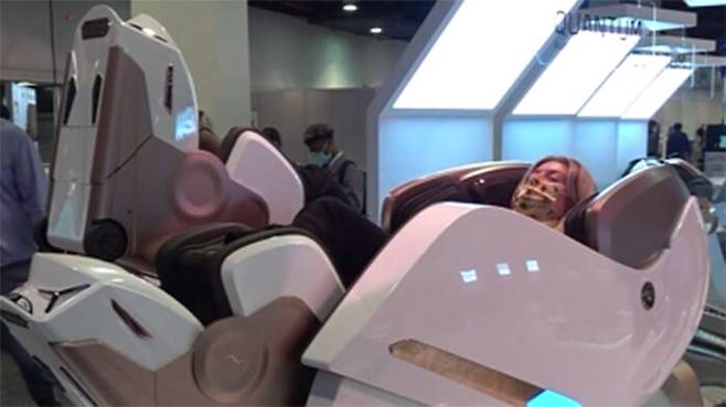 또 안마받으면서 혈압과 심전도 측정이랑 체성분 같은 게 분석도 되고요. 고농도 산소가 나오는 안마의자도 있는데요, 안마만 받는 게 아니라, 건강관리까지 하는 게 이번 CES 콘셉트라고 합니다.