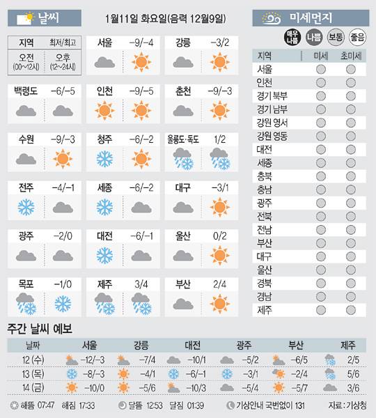 <날씨이야기>1월11일 화요일(음력 12월9일)