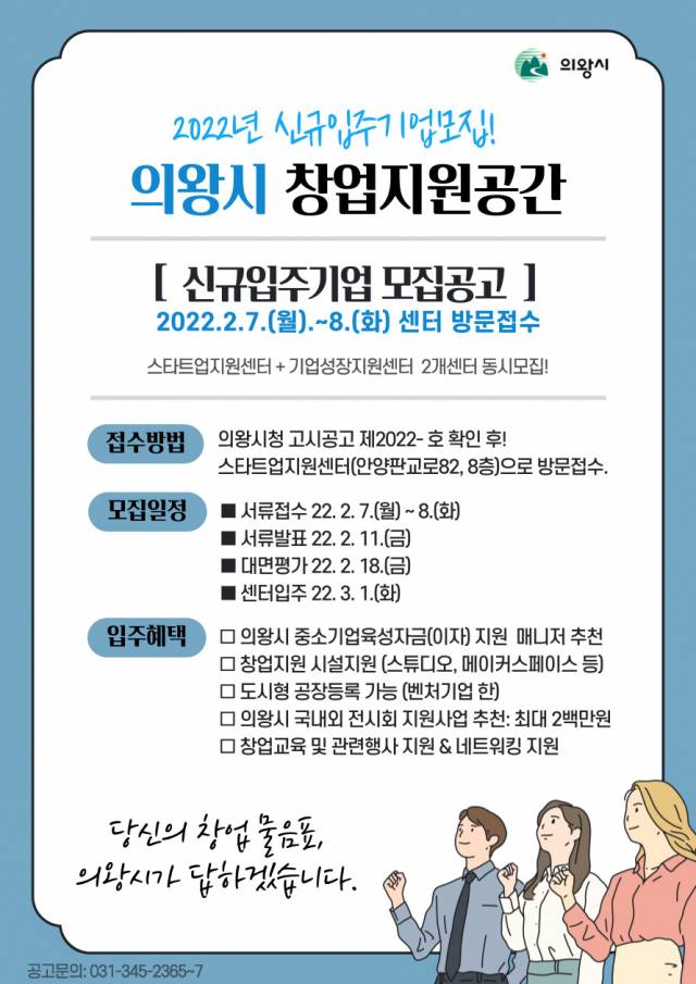 의왕시는 스타 기업을 육성하기 위해 창업지원공간에 입주할 기업을 모집한다고 10일 밝혔다.