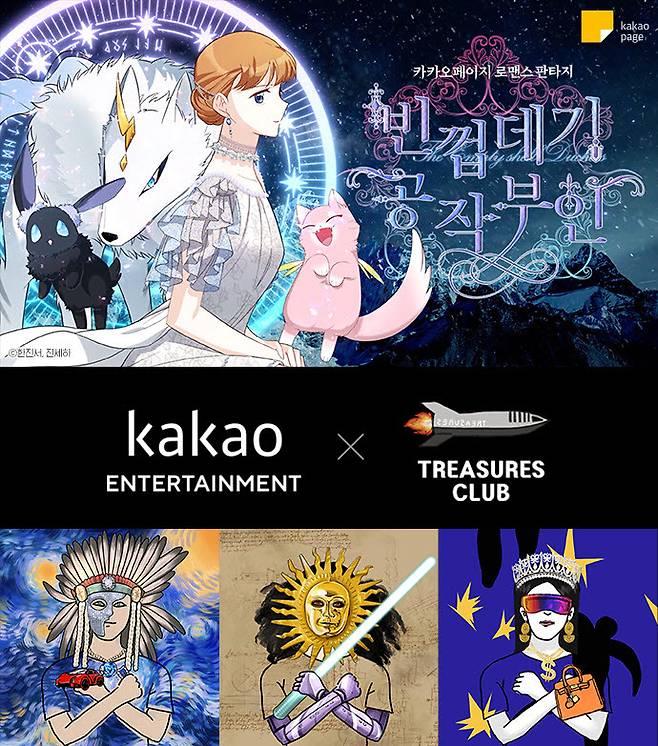 카카오엔터는 오는 22일 NFT 제너러티브 아트 전문 트레져스클럽과 협력해 '카카오엔터 X 트레져스 웹툰 빈껍데기 공작부인 NFT 콜렉션'을 선보인다.