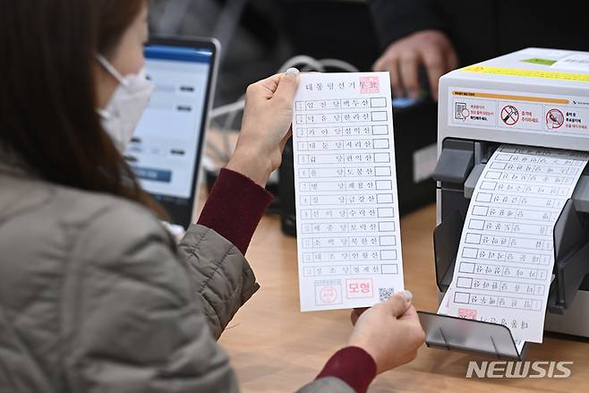 [수원=뉴시스] 김종택기자 = 제20대 대통령선거를 두 달여 앞둔 10일 오후 경기도 수원시 영통구 경기도선거관리위원회에서 시·군 선관위 공무원들이 사전투표 교육을 받고 있다. 2022.01.10.