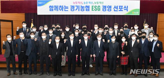 [수원=뉴시스] 김종택 기자 = 경기농협은 10일 지역본부 대회의실에서 ‘ESG경영선포식’을 개최했다. 경기지역본부와 관내 시군지부 임직원이 참석한 이날 선포식에서는 2022년 ESG경영 실천을 위한 경기농협 경영방침을 선포했다.