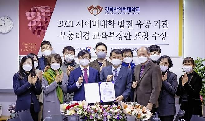 한편 경희사이버대는 사이버대학 발전에 기여한 공로로 '2021년도 사이버대학 발전 유공 기관 부총리 겸 교육부장관 표창'도 수상했다. 지난 2018년 최초 수상에 이어 3년 만에 사이버대학 발전 유공기관으로 2회 연속 선정, 최상의 역량을 갖춘 사이버대학임을 입증했다.