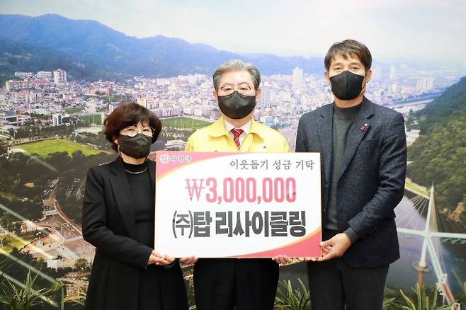 의령군 용덕면 소재 ㈜탑리사이클링(대표 주성현)은 10일 의령군청을 방문해 이웃돕기 성금 300만원을 기탁했다.