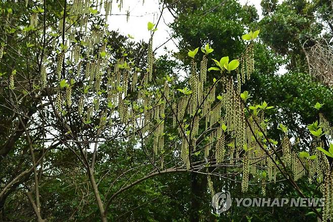 (완도=연합뉴스) 전남 완도의 한 섬에서 발견된 국내 미기록종 식물. 전남도산림자원연구소는 이 식물을 완도술꽃나무로 이름 지어 학술지에 발표했다. 2022.1.10 [전남산림자원연구소 제공·재판매 및 DB 금지]