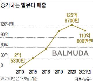 테라오 겐 대표는 2003년 유한회사 ‘발뮤다 디자인’을 설립했다. 예술인의 길을 단념하고 본격적인 제조업에 뛰어든 순간이다. 회사는 2008년 글로벌 금융위기 당시 파산 직전까지 몰리기도 했다. 2011년 사명을 발뮤다㈜로 바꿨다. 매출은 2010년 2억5300만엔(약 25억원)에서 2020년 125억8700만엔(약 1258억원)으로 급증하는 추세다.