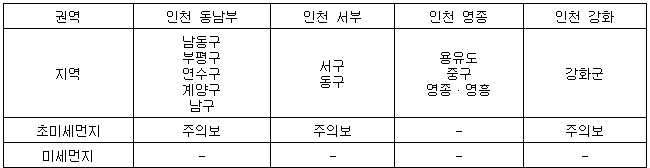 인천 영종·영흥권 초미세먼지주의보 해제